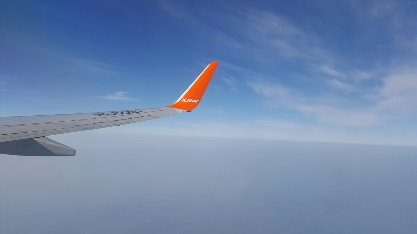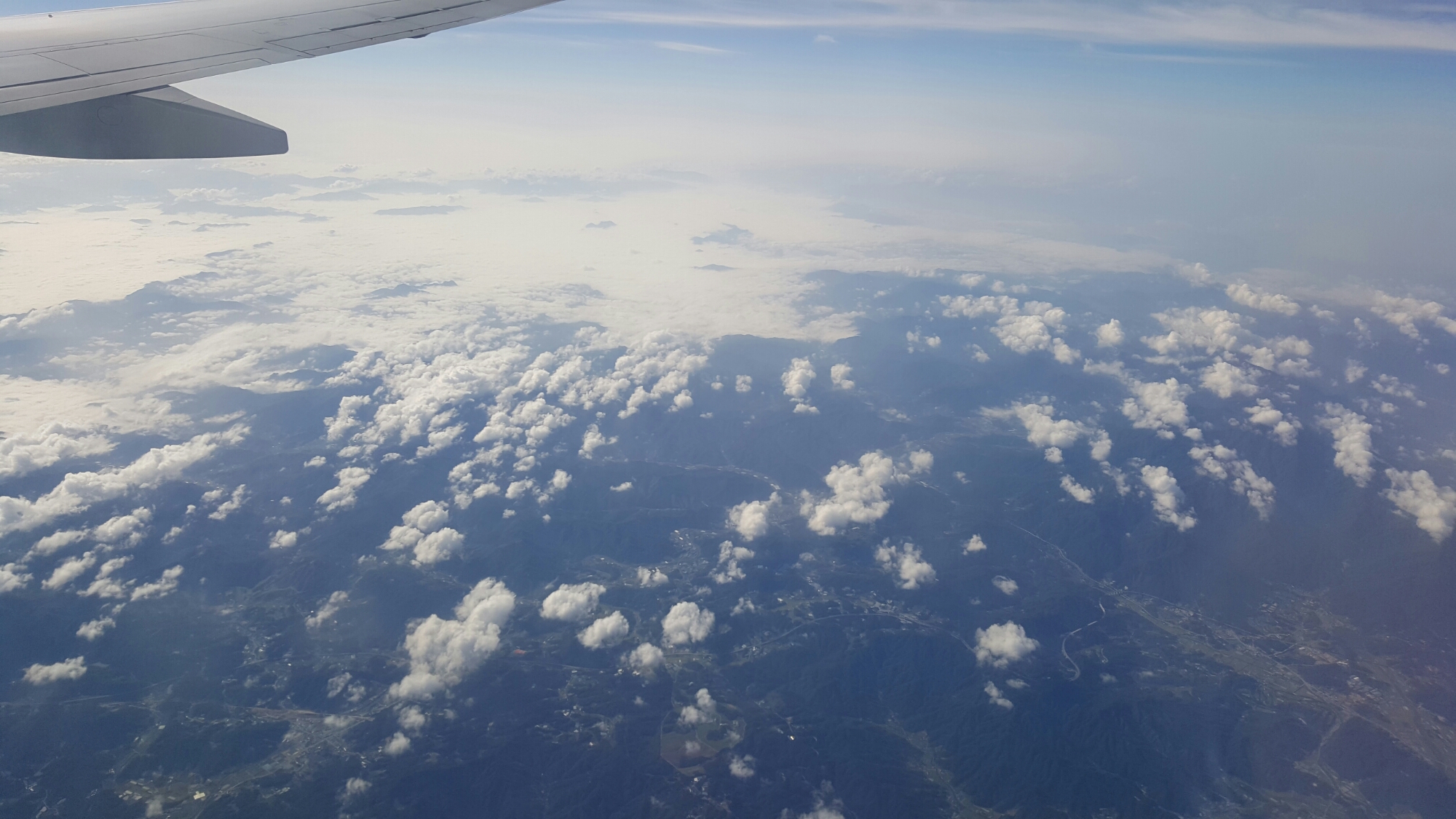 나리타 공항에 한국계 은행 지점이나 출장소가 있기를 바라며 창밖의 뭉게구름을 바라본다…