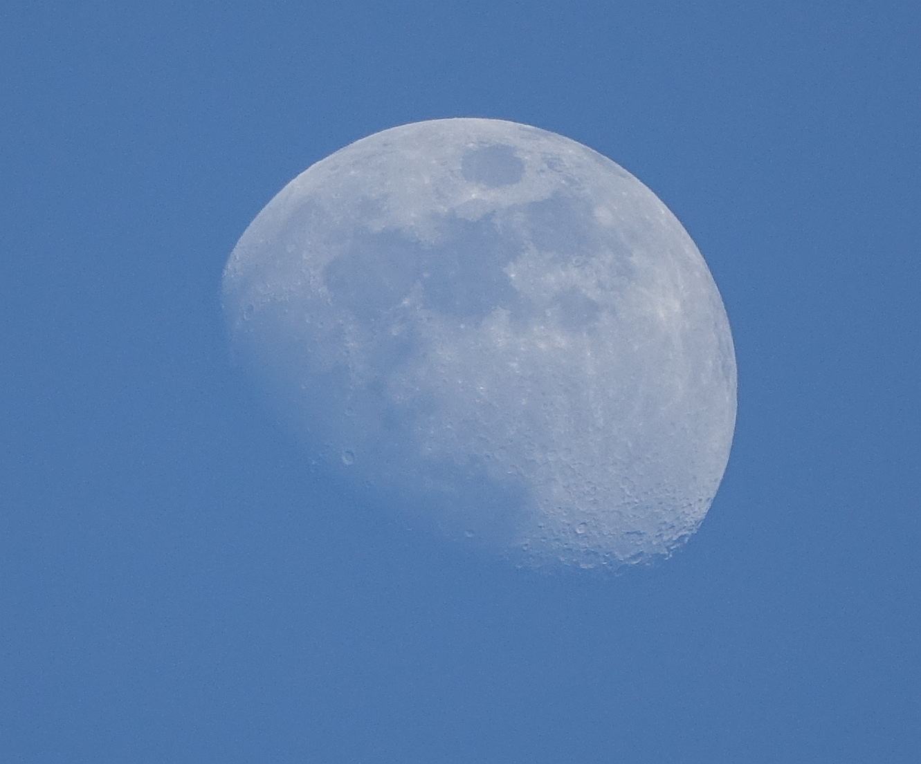 파란 저녁 하늘에 시간을 잊은 달이 떴다.