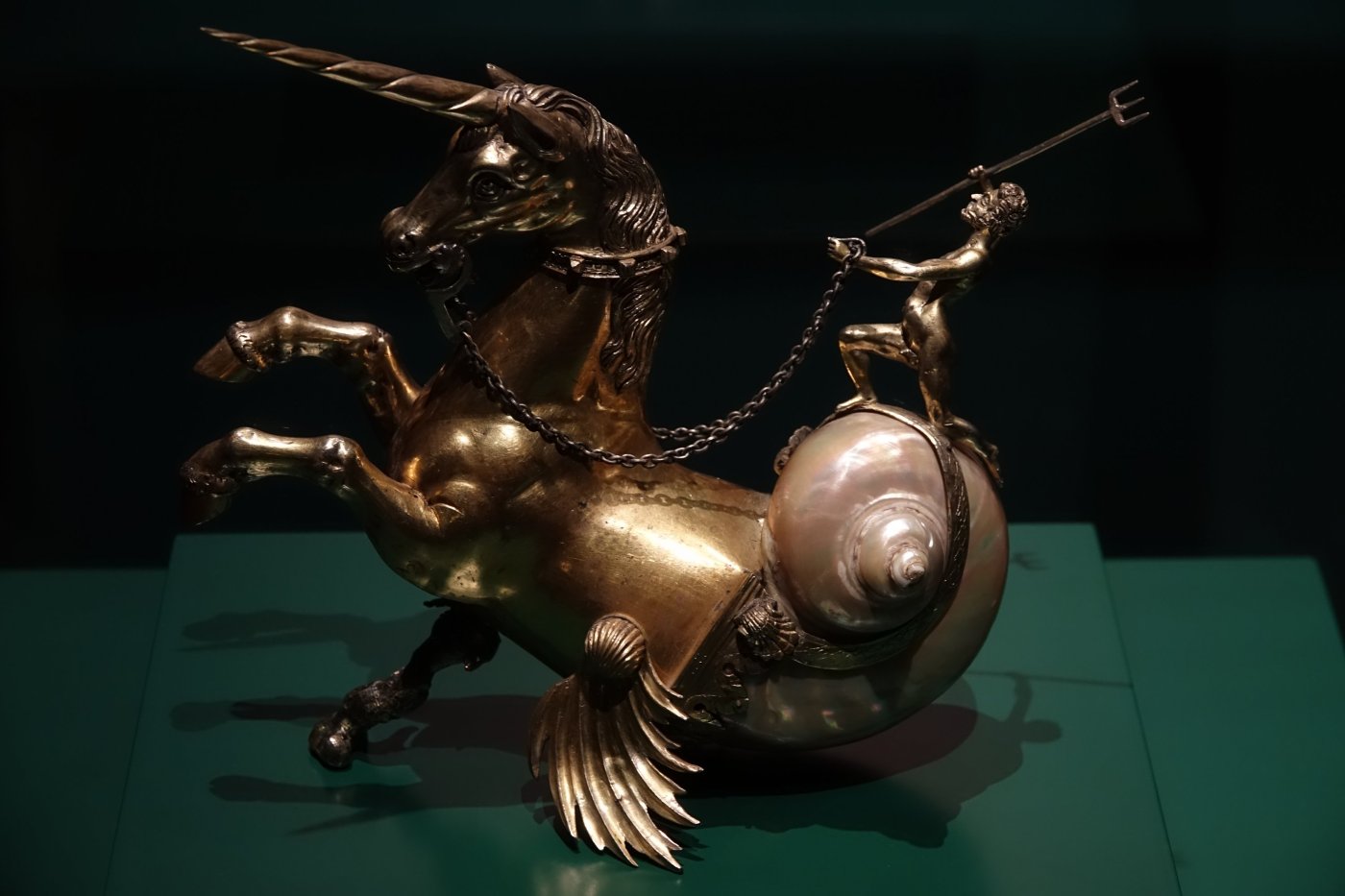 상아, 청동, 은, 도금은, 보석, 도자기 등 작품의 재료를 기준으로 세션이 분할되어 있기에 소재의 다채롭고 창의적인 활용에 대해서 학습할 수 있는 구성이었다. 당대는 제국주의의 싹이 점차 푸른 빛으로 여물어 가던 시기였다. 공시적으로 가로지르는 권력욕망은 기독교 세계 마저 좁게 느껴져 아프리카, 동방, 아메리카 등 미지의 대륙으로 시선을 돌리게 했고, 기술의 발달은 교역(또는 수탈)의 증가로 이어져 이국적인 산물들에 대한 탐욕을 부추겼다. 새로운 재료는 새로운 조형의지를 촉발한다. 이번 전시에 출품된 상아 및 코뿔소 뿔 조각, 산호 장식, 자기 등은 이국적인 재료와 예술품이 어떻게 새로운 조형의지를 창출하고 기존 전통 예술과 접붙이는지를 잘 보여준다.