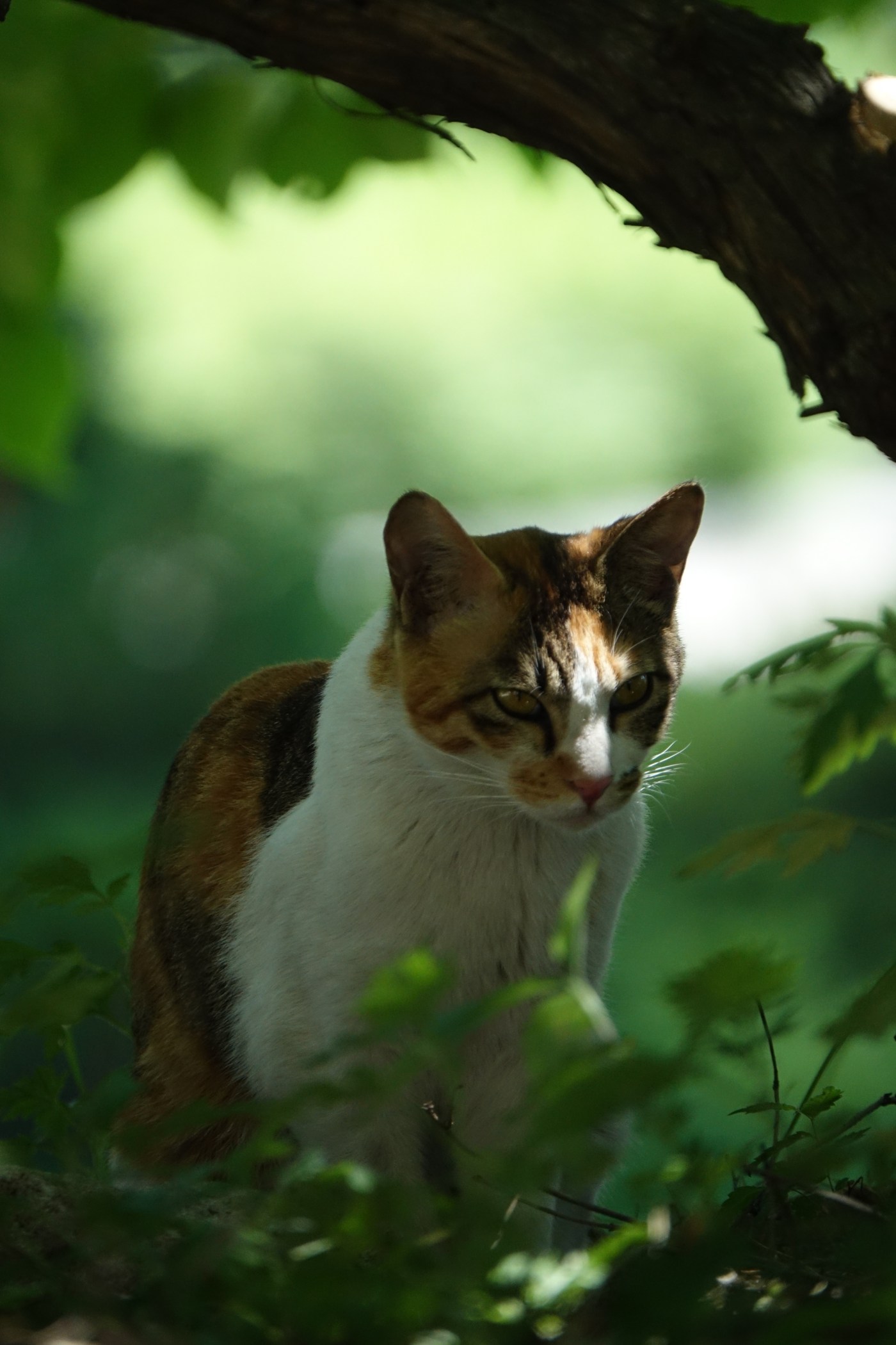 볕을 피해 그늘로 몸을 숨긴 청년기의 고양이다.