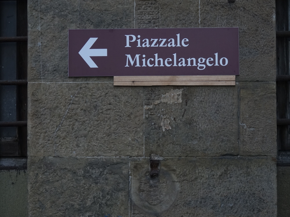 피렌체가 배출한 가장 위대한 천재에게 헌정된 미켈란젤로 광장은 주세페 포지(Giuseppe Poggi)의 설계로 1869년에 지어졌다. 당시 피렌체는 이탈리아의 수도였고, 그에 걸맞는 도시 재정비 작업이 한창이었는데, 이 광장의 조성도 그 일환이었다. 미켈란젤로의 작품은 없지만 청동 복제품은 있다. 그 유명한 다비드 상과 메디치 채플에 있는 네 알레고리를 조합한 이 청동상은 1873년 6월 25일에 광장으로 옮겨졌는데, 그 이동 작업에 자그마치 18마리의 소가 동원되었다고 한다.