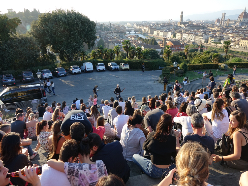 전세계에서 몰려온 피렌체 여행자들이 하루를 마감하기 위하여 찾는 단골 코스, 미켈란젤로 광장(Piazzale Michelangelo)이다.