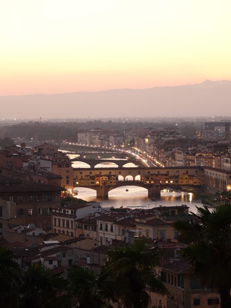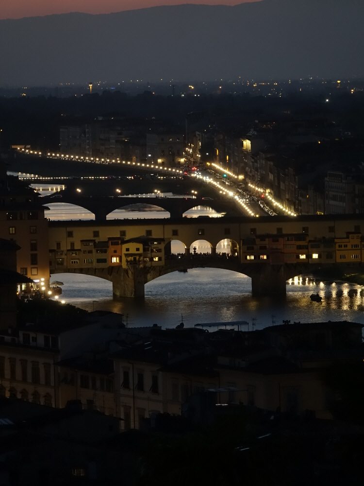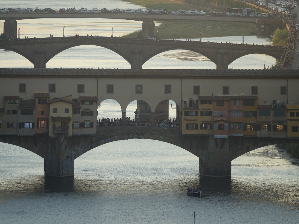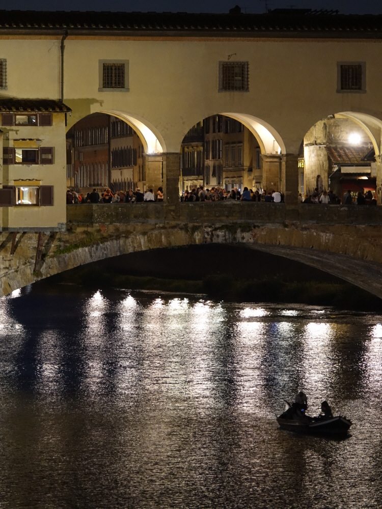 숙소로 돌아오는 길에 베키오 다리를 지나게 되어 있다는 사실은 역시나 기쁨으로 다가왔다. 야경을 배경으로 인증샷을 남기기 위해 다리 위를 가득 메운 관광객들, 그리고 그 아래를 유유히 지나가는 뱃사공과 연인의 대조는 이 밤의 완벽한 화음을 빚어내고 있었다.