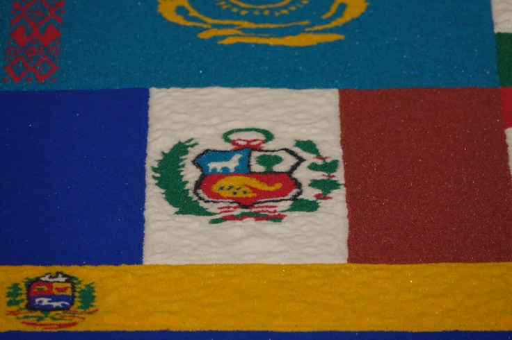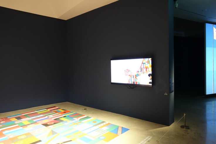 나는 주세균의 「NOTIONAL FLAG」가 재미있었다. 총천연색의 모래로 갤러리 바닥에 각 국의 국기를 정교하게 표현한 설치작품이다. 동시에 한 쪽에서는 그 작품을 빗자루로 쓸어서 해체하는 영상을 보여준다. 저 정교한 작품을 만들기 위해 얼마나 공을 들였을지를 감탄하게 하면서 한편으로는 전시가 끝나는 순간 그 모든 노력이 이렇게 여지없이 한 순간에 사라지게 될 것임을 시사한다. 결국 국가라는 선명해 보이는 관념이 그리 영원하지도, 숙명적이지도 않다는 단순하고도 직관적인 은유를 담고 있다. 어찌보면 너무나 명쾌한 답이라서 재미가 반감되기도 한다. 하지만 일단 총천연색의 국기를 내려다보는 조형성 자체가 미적 쾌감으로 다가오고, 언젠가 다가올 소멸을 안타까워하면서도 동시에 즐겨보고 싶다는 얄궂은 욕망이 이 작품을 더 특별하게 만드는 것 같다. 우리가 애써 도미노를 쌓는 이유는 결국 송두리째 무너뜨리기 위함이 아닌가?
