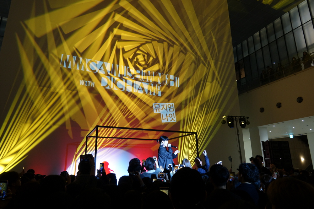 전시보다는 그 이후에 펼쳐진 ‘MMCA 뮤지엄 나잇’이 훨씬 재미있었다. DJ GLOW는 부담스럽지 않은 BGM 성격의 EDM을 깔아 주었고, 이후 김아일과 서사무엘의 공연이 이어졌다. 김아일은 인디한 감성의 랩과 디제잉이 결합된 공연이었다. 서사무엘은 랩과 R&B의 경계를 오가는 보컬을 들려주었는데, 재지하면서도 트렌디한 감각이 더해져 미술관에서 열린 파티의 호스트로서는 제격이었다. 그는 관객 사이를 뛰어다니며 한 사람 한 사람의 디오니소스를 일깨우기 위하여 최선을 다했다. 공연을 떠나서, 정숙을 요구하는 한 낮의 전시장에서 탈피하여, 와인 한 잔을 들고 리듬을 타고 있다는 사실 자체가 묘한 일탈의 재미를 선사했다.