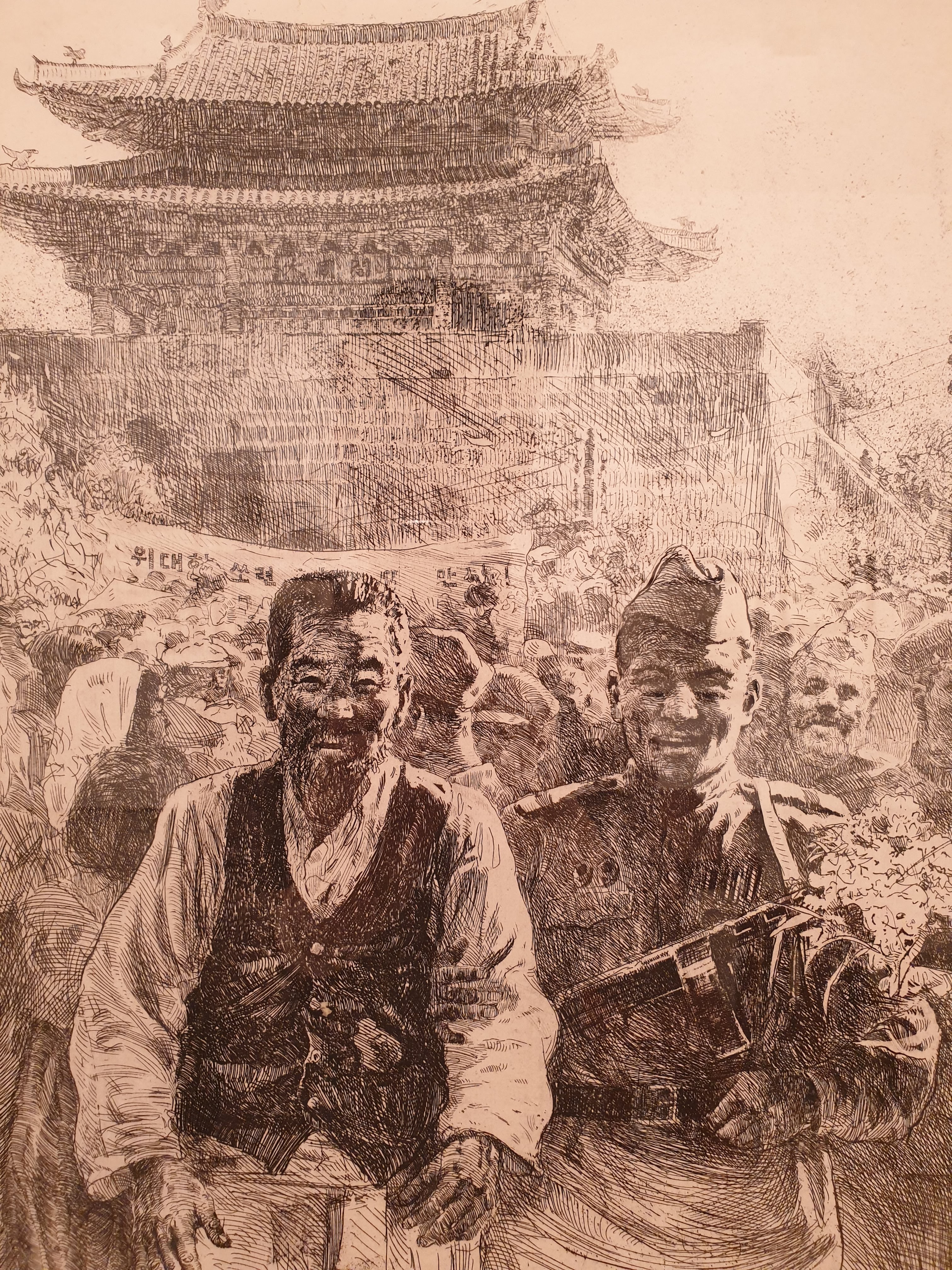 학고재에서 열린 이번 「변월룡: 우리가 되찾은 천재 화가」 展을 둘러보면 알 수 있듯, 그는 한민족의 정체성을 바탕으로 북한 미술의 지도자격 역할을 맡기 원했고, 행정적 역할을 수용했고, 짧은 기간이나마 성공적으로 임무들을 수행했다. 그 임무들은 사회주의 리얼리즘이 지향하는 바로 그 목표, 즉 공산당과 공산주의 체제를 찬양하고, 프롤레타리아의 노동 정신을 고취하고, 자유민주주의 진영에 대한 칼날을 드러내는 목표들에 완전히 결속되어 있다. 물론 그 임무들은 그가 러시아 최고 교육기관인 상트페테르부르크 레핀미술대학 교수로 재직할 때 수행했던 과업들의 연장선상에 놓여 있다. 이번 전시에 출품된 다수의 작품에서도 러시아와 북한의 체제를 찬양하는 노골적인 이미지와 문구를 확인할 수 있다.