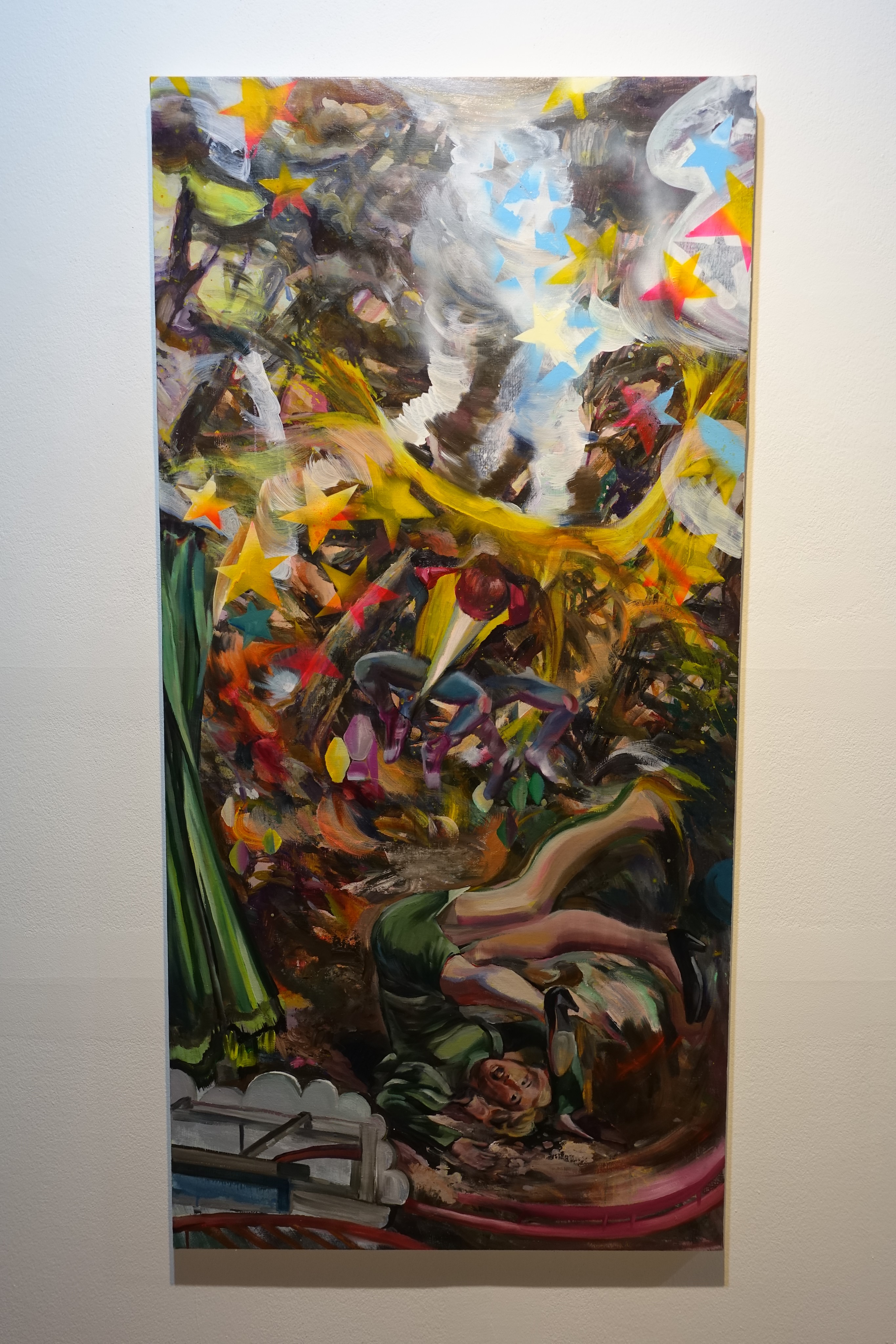 이채은이 송은아트큐브에서 선보인 13점의 작품은 회화의 가능성을 실험하면서 그 생명력을 이어가기 위한 시도이다. 만만치 않은 규모의 ‘그려진 콜라주’들이 중심을 이루고 있는데, 여기서는 TV뉴스, 사회주의적 사실주의, 세계명작동화 삽화, 미술사 교과서급 명작 등 온갖 출처를 통해 스쳐간 이미지들이 두서없이 재배치됐다. 알레고리적 도상들은 추상적인 공간을 부유하다가 우연히 한 순간에 그곳에 정박한 것처럼 보이는데, 이러한 우연성은 누구에게나 하나쯤 있게 마련인 묘한 경험을 상기시킨다. 그 경험이란 유년기에 우연히 뇌리에 박힌 이미지 하나가 오랫동안 장기기억 저편에서 동면을 취하다가 일상적 한 순간의 자극을 통해 밑도 끝도 없이 줄곧 소환되는 현상이다. 비례감도, 맥락도, 서사도 거세된 화면 속 개체들은 꿈속에서 본 풍경을 연상케 한다는 점에서 초현실주의적이라고 할 수도 있겠지만, 하나하나 뜯어보면 몽상으로의 도피보다는 우리가 속한 시공간에 단단히 결속되어 있다는 점이 점차 분명해진다. 사실 우연한 배치는 쉬울지 몰라도 우연을 가장한 배치란 절대 녹록지가 않은데, 이채은은 감독석에 똬리를 틀고 앉아 우연을 연기하는 배우들을 효과적으로 지휘한다. 모든 우연한 가능성을 한 순간에 고정시키고 그 전후 사정을 관람객에게 맡기는 것은 회화가 지금까지 잘 해온 일이며, 앞으로도 해내야 하는 일이다.