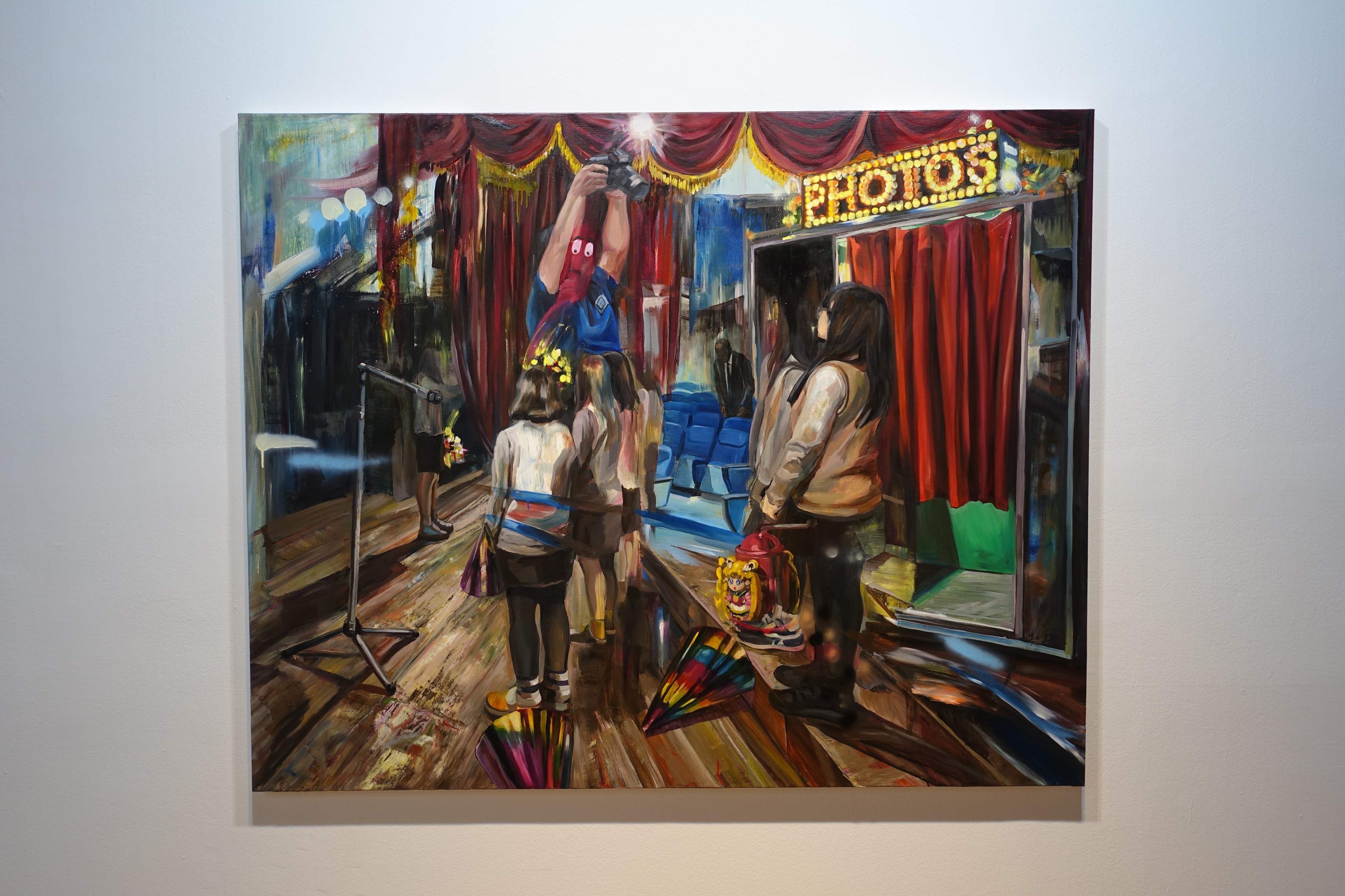 오른쪽의 초록색 옷을 입은 여성은 80년대 극장간판에서 튀어나온 것 같다. 생각해보면 그 시절 극장간판을 맡았던 ‘키치의 장인’들은 하나같이 나름대로 사실주의의 대가들이었는데, 멀티플렉스 시대의 도래와 맞물려 붓을 놓고 이름도 없이 사라져갔다. 이들이 모두 돌아가시기 전에 다시 발굴하여 동시대 미술에 맥락화하는 작업을 하고 싶다는 생각이 든다.