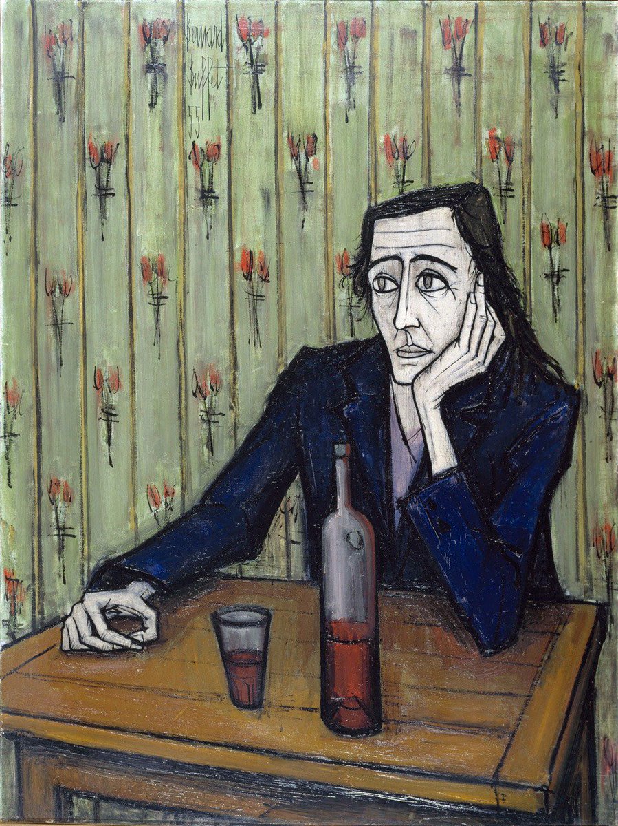 뷔페의 화면 안에 모여든 대상은 그것이 정물이든 인물이든 무엇 하나도 그들끼리 소통하려고 하지 않는다. 한 화면에 있되 서로 멀찍이 떨어져서 단절된 상황을 보여준다. 또한 뷔페의 초상화 속 인물들은 대부분 관람자와 눈을 마주치지 않고 멍한 시선으로 먼데를 보고 있다. 이 모든 요소들은 세상과 소통하기 보다는 자신의 수직적 화면과만 소통하려했던 뷔페의 자의식을 보여준다. 뷔페가 자초한 이 외로움은 죽기 전까지 일관되게 그려졌던 올곧은 직선과 맞닿아 있다.