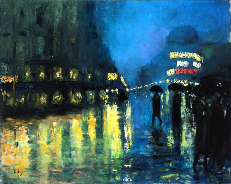 레세르 우리의 <포츠담 광장의 밤(Potsdam Square by Night, 1920년대 중반)>은 가장 인상적인 작품이었고, 그 앞을 지나는 관람객들의 수군거리는 목소리를 듣자니, 나만 그렇게 느낀 것은 아닌 모양이다. 어스름한 저녁, 광장은 서서히 어둠에 잠기고, 잦아든 빗줄기에 촉촉해진 지표면은 푸른 밤하늘과 건물에서 새어 나오는 가스등을 반사하며 달밤의 호수처럼 반짝거린다. 유희를 찾아 나선 사람들은 삼삼오오 우산을 받쳐 들고 거리를 누비는데, 도시의 산책자는 화려한 밤의 조명과 속내를 알 길 없는 공허한 눈빛의 틈바구니에서 자신이 진정 속할 곳이 어디인지를 알지 못한 채, 다소간 혼란에 찬 눈빛으로 배회한다.