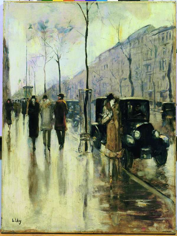 화가는 수많은 사무실, 극장, 피카디리 카페, 철도역에 둘러싸인 포츠담 광장과 그 사이를 배회하던 군중을 사랑했고, 전쟁을 앞둔 아름다운 시절의 마지막 정점을 여러 차례 그림으로 남겼다. 화가 사후에 이 그림은 베를린 유대인공동체(Jewish Community of Berlin)가 관리했으나, 유대인미술관이 강제로 문을 닫게 된 1938년에 나치의 약탈 품목 중 하나가 되어 자취를 감추게 되었다. 1945년에 나치 제국문화국의 지하 저장고에서 발견된 이 작품은 결국 미국에 거점을 둔 유대인배상승계단체(Jewish Restitution Successor Organization)의 노력으로 예루살렘에 안착할 수 있었다.