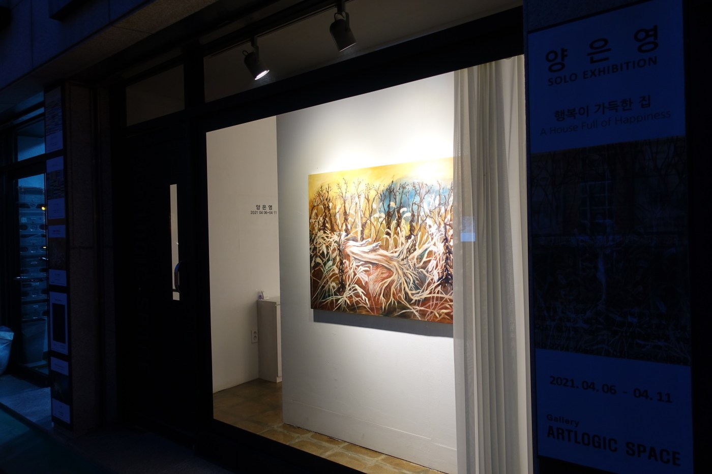 이번 전시, 「행복이가득한집」은 양은영 작가의 첫 번째 개인전이다. 작가가 2012년에 대학을 졸업했으니 개인전이 열리기까지 대략 10년이 걸린 셈이다. 그간 여러 단체전이나 공공예술 프로젝트에 종종 이름을 올렸으나 개인전 데뷔는 늦은 편이다.