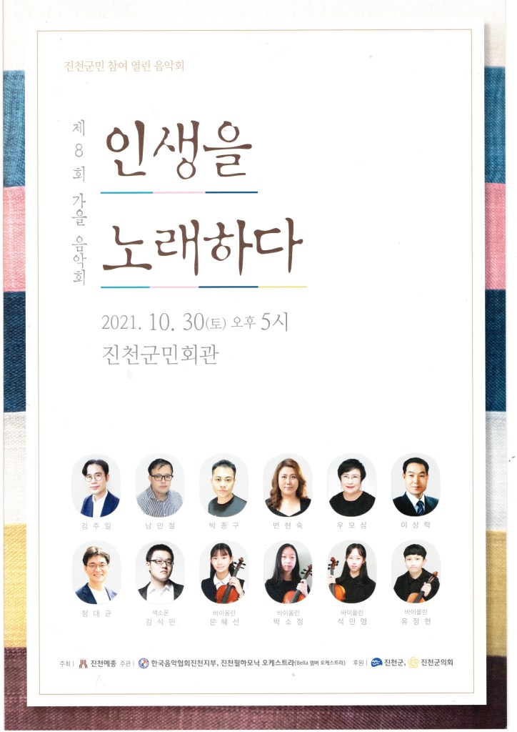 동네를 걷다가 우연히 현수막 하나를 보았다. 군에서 음악회를 개최하는데, 거기에 노래로 참여할 군민을 모집한다는 내용이었다. 오래전부터 여러 뮤지컬 갈라 공연이나 팝페라 무대를 보면서 오케스트라 연주에 맞춰 노래할 기회를 막연히 동경해 왔다. 반드시 지원해야겠다 싶었다.