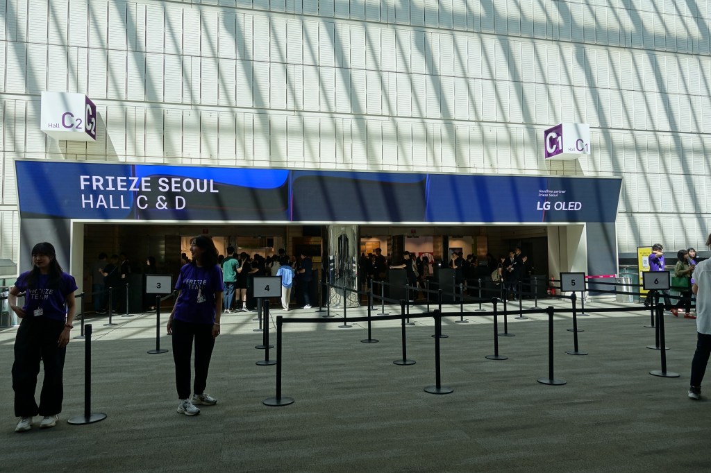 작품 구경보다 각양각색의 사람들을 구경하는 것이 더 재미있었다. 예술을 사랑하는 사람들은 역시나 평균 이상의 개성과 매력으로 무장하고 프리즈를 찾았다. 언제 다시 꺼내 볼지 모르는 사진을 연신 찍어대는 사람들의 눈빛에는 세계에서 가장 유명한 동시대 미술 최첨단의 현장에 나도 참여하고 있다는 뿌듯함이 가득했다. 아마도 8만 원은 이 지점에서 가장 강력한 마력을 발휘할지 모른다. 국립현대미술관에서 2천 원 내고 보는 전시가 구성은 훨씬 뛰어나겠지만, 진정으로 관여도가 높은 관객의 비율은 프리즈가 더 높을 것이다. 비싼 돈을 냈으니 미술에 관심이 없는 사람들은 애초에 여기 올 일도 없거니와 일단 오고 나면 뽕을 뽑아야 하니 열의를 다해 둘러보게 된다. 그 열정이 또 다른 누군가의 열정과 뒤섞이며 시너지를 일으키고, 광활한 전시장 전체가 미술 숭배자들의 벅찬 순례로 넘실거리게 된다. 물론 그 와중에도 억지로 끌려온 짐꾼들은 있게 마련이지만.