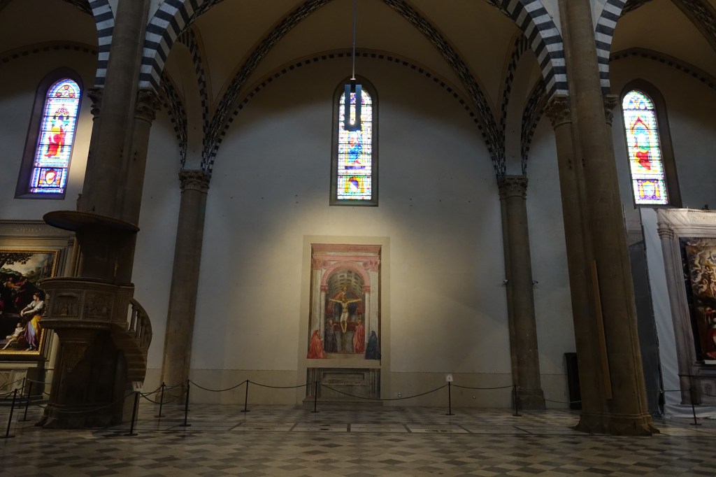 마사초(Masaccio)의 프레스코 <성삼위일체(1426)>는 그저 원근법을 선구적으로 잘 구현해냈다고 해서 호들갑스럽게 치켜세워지는 것이 아니다. 많은 미술사 교과서가 이 작품을 고화질 총천연색 도판으로 정성스럽게 실어 보지만, 이 도판을 둘러싼 상찬들은 책장이 넘어감과 동시에 덧없는 말 잔치가 되어 휘발되어 버린다. 이 작품의 위대함을 알려면 산타 마리아 노벨라(Santa Maria Novella) 성당에 가서 어떤 벽에, 어떤 크기와 색감으로 그려져 있는지를 직접 봐야 한다. 지금 피렌체에 가서 보는 것만으로는 부족하고, 여태껏 스마트폰과 UHD 영상에 절여진 모든 기억과 감각을 제거한 채, 중세 말 농부의 눈으로 봐야 한다. 해 뜨면 밭 갈고, 해지면 자고, 가뭄 들면 굶고, 군인이나 성주가 들이닥치면 수탈당하고, 전염병 돌면 영문도 모른 채 가족 한둘을 잃고, 전쟁 나면 아들이 징집되어 떠나고, 이런저런 고난에 도무지 희망이 보이지 않을 때 지푸라기 잡는 심정으로 성당 문에 들어섰던 그 농부의 눈으로 봐야 한다. 어두컴컴한데 향 연기만 매캐한 그 대성당 안에 어렴풋이 한 줄기 빛이 들어와 우연히 그 그림에 닿았을 때, 먹먹했던 그 벽을 뚫고 들어간 안쪽 공간에 선 성모와 눈이 마주친 순간을 상상해야 한다. 지금 우리에게 그런 눈은 없고 앞으로도 없을 것이다.