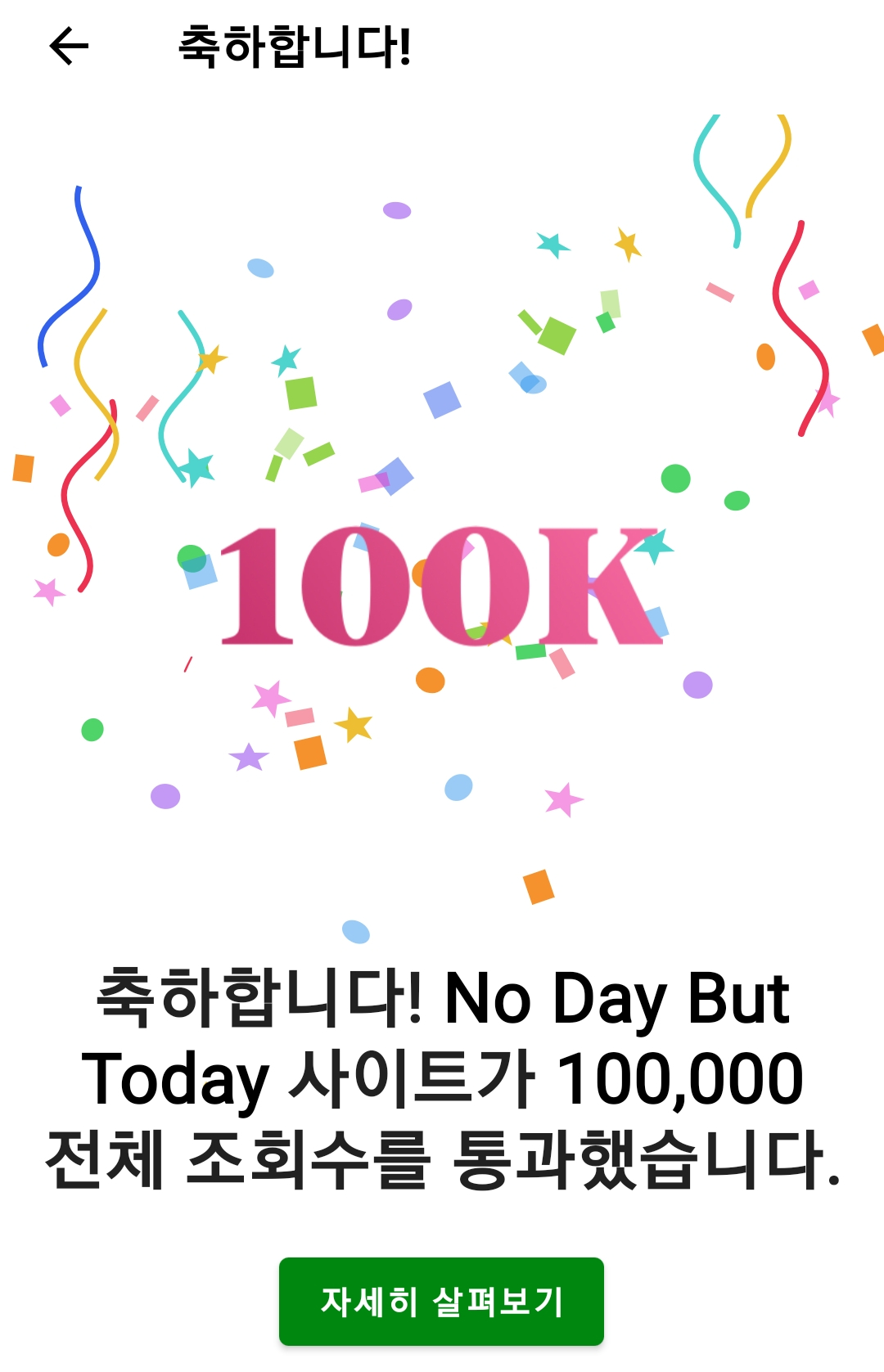 어젯밤에 워드프레스 앱(정확히는 Jetpack 앱)에서 알림이 하나 떴다. ‘자의식 쩌는’ 이 홈페이지가 10만 뷰를 달성했다는 것이다. 상투적인 표현이지만, 많다면 많고, 적다면 적은 조회 수다. 2016년 8월 12일에 첫 글을 게시했으니 2,822일 만이다. 유튜브나 인스타그램처럼 트래픽이 왕성한 매체였다면, 하다못해 역사와 전통을 자랑하는 네이버 블로그였다면 훨씬 빠르게 달성했을 수도 있는 수치다. 좀처럼 검색 알고리즘의 성은을 입기 어려운 가입형 워드프레스 환경에서 7년 9개월을 버텨 얻은 결과다.