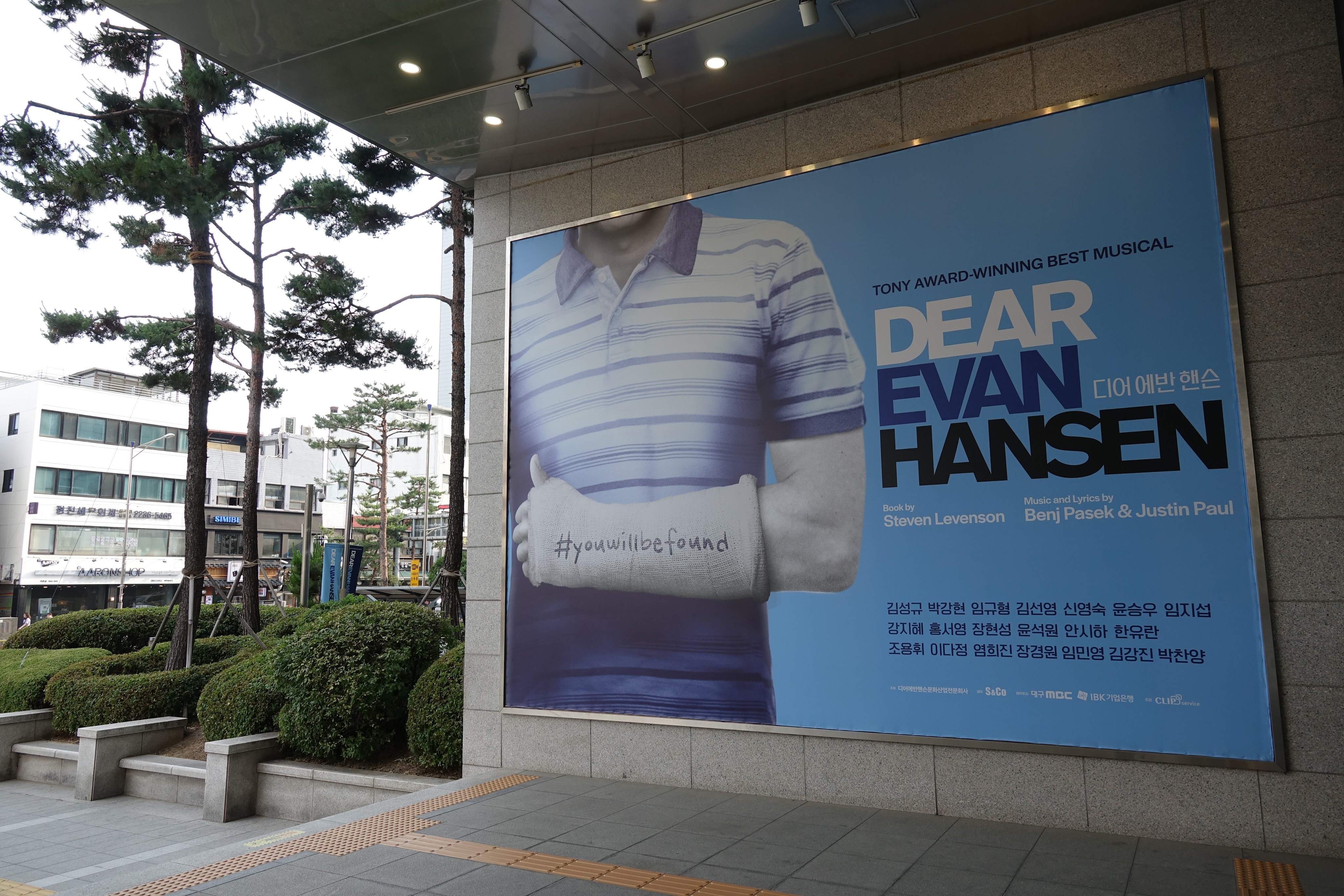 라이센스판 뮤지컬 <디어 에반 핸슨> 공연 소식을 들었을 때는 사실 <팬텀싱어4>을 통해 익숙해진 박강현이나 임규형 버전을 보고 싶었다. 하지만 내가 볼 수 있는 일정의 캐스트가 김성규였고, 원래 배우에 집착하는 편은 아니기에 그냥 김성규 버전을 봤다. 배우 김성규의 작품은 처음 봤는데, 극소심 캐릭터를 정말 잘 소화해냈다. 혼자 중얼거리거나 불안증 때문에 속사포처럼 쏟아내는 대목, 그리고 가성을 자주 넘나들어야 하는 고난도의 미성 창법이 훌륭했고, 감정 표현도 흠잡을 데 없어 몰입감을 주었다. 내가 본 날의 캐스트는 대체로 완벽했는데, 유일하게 아쉬운 점이라면 조이 머피 역의 홍서영 배우가 하이틴 캐릭터에 맞지 않게 너무 원숙하면서도 전형적인 뮤지컬 창법이라 약간 거슬렸다. 부모님과 함께 노래하는 대목(“Requiem”)에서 혼자 튀면서 다소 노티나는 느낌이 있었다. 래리 머피 역의 장현성 배우도 연기는 전반적으로 안정적이었으나, 혼자 꽤 많은 분량을 노래해야 하는 “To Break In A Glove”에서는 확실히 한계를 보였다. 뮤지컬에서 ‘나 지금 노래 부릅니다.’라는 느낌을 주는 것만은 피해야 한다.