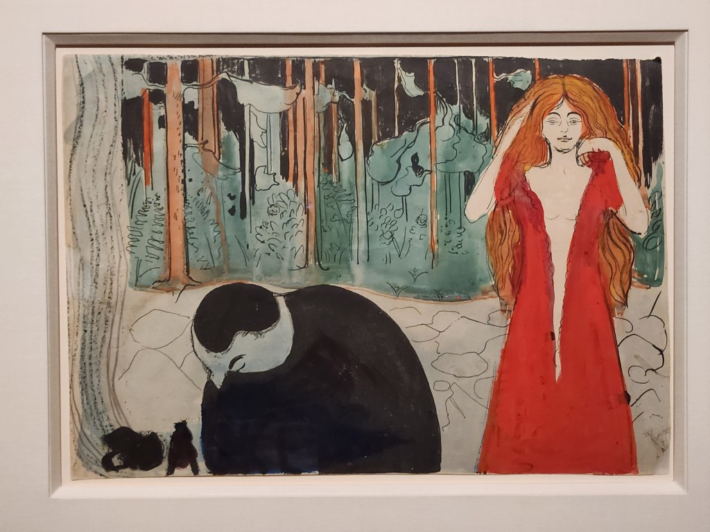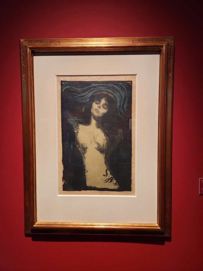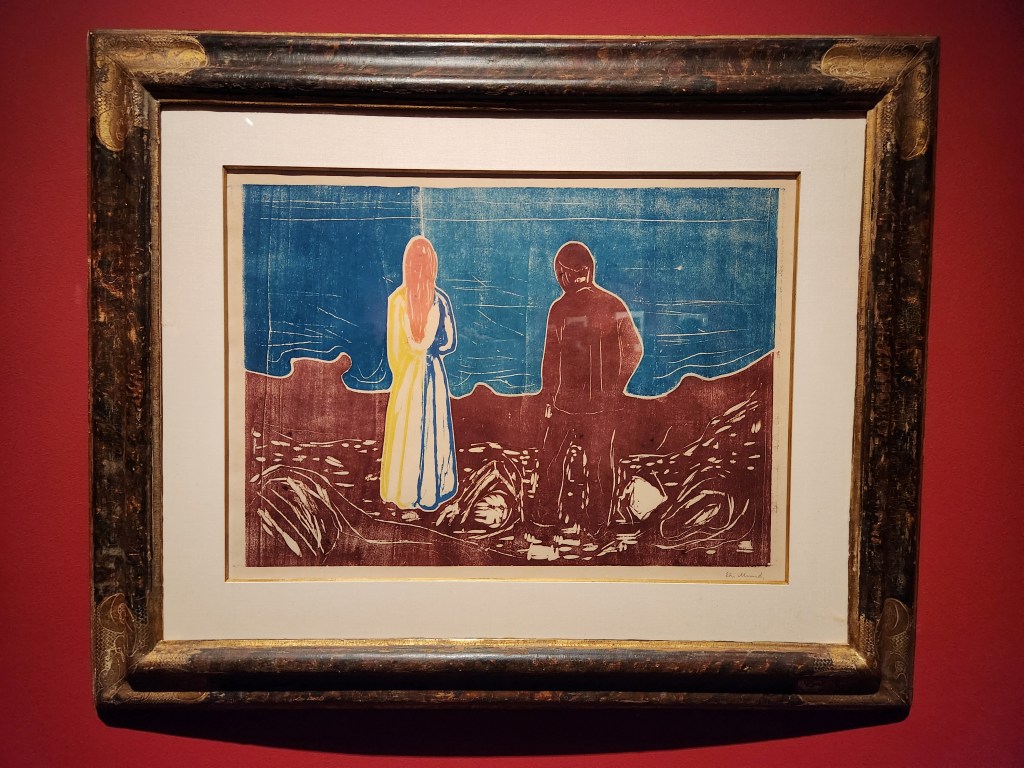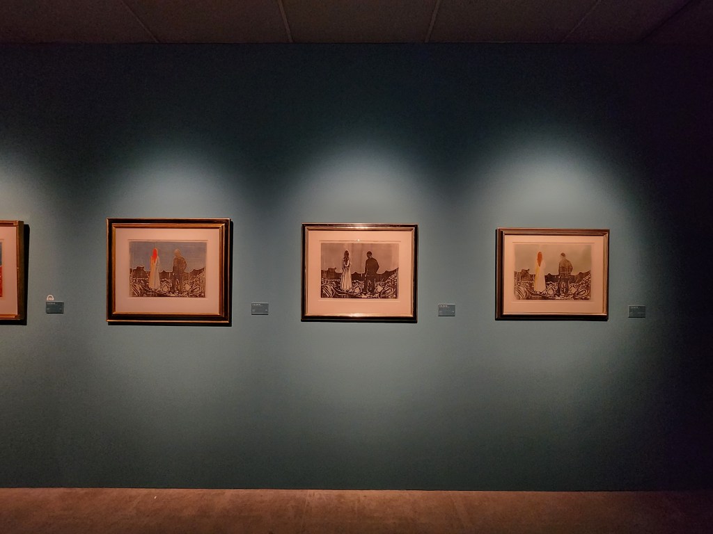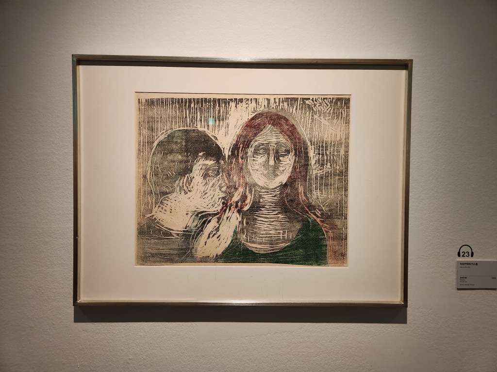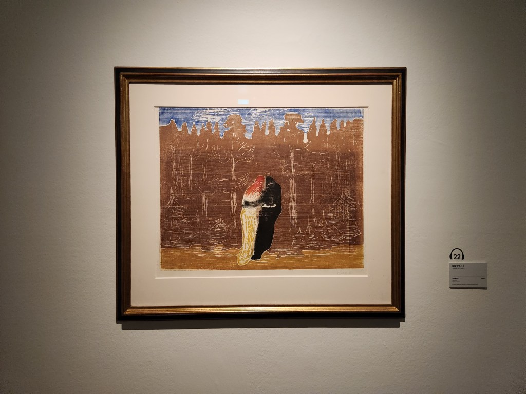 판화의 비중이 높다는 점은 논외로 하자. 판화도 회화만큼 독립적 매체로서 미적 가치를 지니고, 뭉크의 판화 실험이 다채롭고 급진적이었다는 점은 이 전시의 독창적 기여니까. 문제는 하나의 주제를 다루는 중복된 판화 작품이 너무 많다는 것, 그리고 그 중복된 작품들이 여러 주제에 분산되어 있다는 점이다. <병든 아이>, 혹은 <두 사람, 외로운 이들> 같이 중요한 모티브가 여러 방법론으로 재해석되어 미세하게 서로 다른 변주를 보여왔다는 사실은 흥미롭지만, 이 모티브가 공간적으로 분절된 전시 속 여러 소주제에 걸쳐 반복적으로 등장하니 피로감을 준다. 변주의 미학은 한 공간에서만 펼쳐 보였어도 충분했을 것이나, 기본적으로 이 전시는 소주제를 너무 세세한 단위로 분절해 놓았기에 중복된 작품을 한 주제에만 몰아넣었다면 전시 구성상 빈틈이 보였을 것이다.