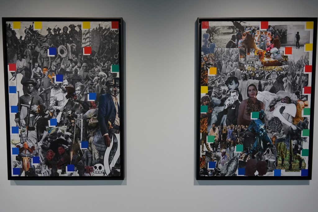 영상, 콜라주, 사진 중에서 눈에 거슬릴 정도의 저해상도 이미지를 전면에 내세운 작품들이 유독 눈에 들어왔다. 캔디스 윌리엄스(Kandis Williams)는 <백인들이 우리를 모두 죽이기 위해 만들어 낸 신과 괴물들(2024)> 연작에서, 백인들이 스스로 세계의 중심이 되려고 내세운 이미지들의 콜라주를 제시했다. 할리우드 황금기를 상징하는 아이코닉한 이미지들은 저해상도의 흑백 잡지에서 거칠게 오려져 꿈속에서 본 듯한 엉성하고 아련한 합성물로 재구성되었다. 또 그 옆에는 백인들이 흑인에 대해 느끼는 경외심과 두려움이 응축된 괴물성에 가까운 야만적 이미지가 나란히 배치되었다. 거칠고, 강하고, 색욕적이며, 통제 불가능한 흑인들은 날렵하게 차려입고 지적 우월성을 뽐내는 백인 아이콘 옆에 나란히 걸려 확연한 대조를 이룬다. 두 이미지의 공통점은 정체를 알 수 없는 원색의 파란 색점을 유사한 패턴으로 공유하고 있다는 점뿐이다. 서로 다른 이미지 원형이 유사한 방법론과 해상도로 묶이고, 다시 두 이미지를 넘나드는 색점이 모종의 관련성을 암시한다. 이로써 인종이라는 미미한 변수와 상관없이 인류는 보편적으로 다양한 정서를 누리고자 하는 본원적 열망을 품고 살아가게 마련이라는 너무나 당연한 진리가 새삼스럽게 도드라진다.