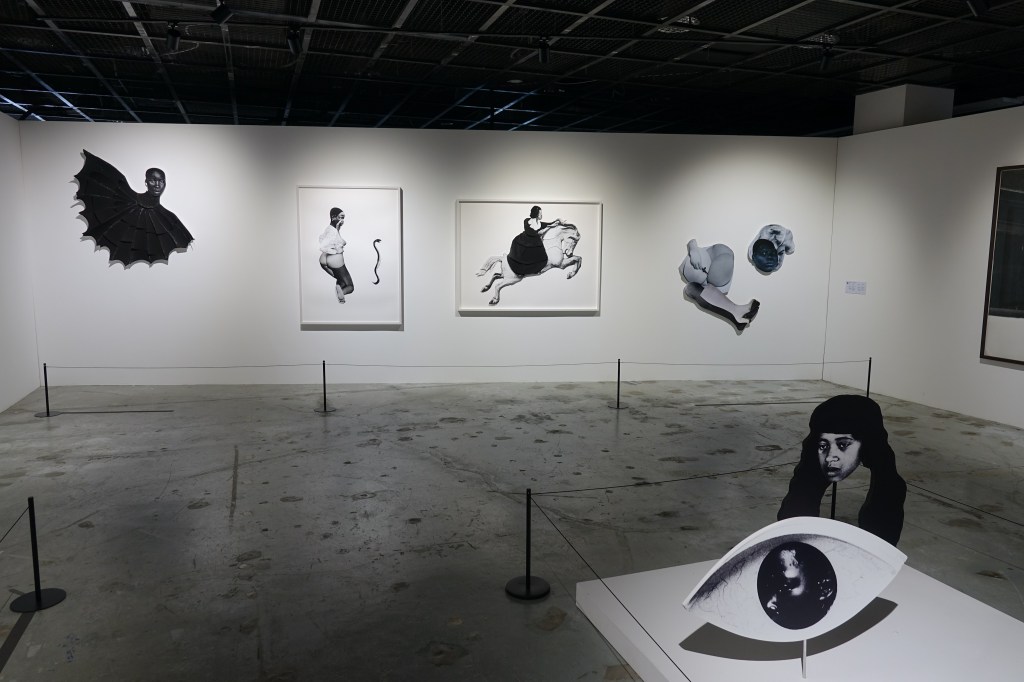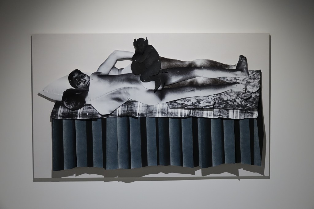 프리다 오루파보(Frida Orupabo)는 인터넷 여기저기서 흑인 이미지를 모아다가 생경한 배치를 통해 부조리를 창출하기도 하고, 하나의 완결된 이미지로 재구성해 초현실적 콜라주로 재탄생시키기도 했다. 그가 모은 재료는 우리가 일반적으로 찾아 헤매는 고해상도의 고품격 이미지가 아니다. 인터넷 서핑 중에 우연히 발견한 듯 전혀 미학적 가치를 찾아볼 수 없는 찰나의 순간이거나, 심지어 이미지 스톡 회사인 알라미(Alamy)에서 제공하는 견본을 워터마크조차 제거하지 않고 그대로 저해상도로 강제 확대해 캡처한 것이다. 우리가 고품질의 결과물을 만들어 내고자 노력할 때 필사적으로 피하고자 하는 그 워터마크와 저품질이 예술 작품으로 버젓이 재결합해 고품격의 액자에 끼워져 화이트 큐브에 걸리는 순간, 이미지 유통을 둘러싼 상거래 관행과 시각 매체의 미적 층위에 관한 오랜 관념들이 통째로 흔들리며 새로운 인지적 쾌를 창출한다. 또 헨리 퓨슬리(Henry Fuseli)의 기념비적 작품을 오마주한 콜라주에서는 저해상도로 거칠게 합성된 두 인물이 누운 침대 커버가 바람에 날려 너풀거리는 동적 이미지를 연출하는데, 이로써 콜라주 속 인물의 목각인형 같은 경직된 조형성은 실제 물리적으로 너풀거리는 움직임을 매개로 평면을 뚫고 관람객의 시지각으로 파고들며 효용 가치가 끝나버린 이미지가 어떻게 미학적·정치적으로 생명력을 갱신할 수 있는지 적극적으로 되묻게 된다.
