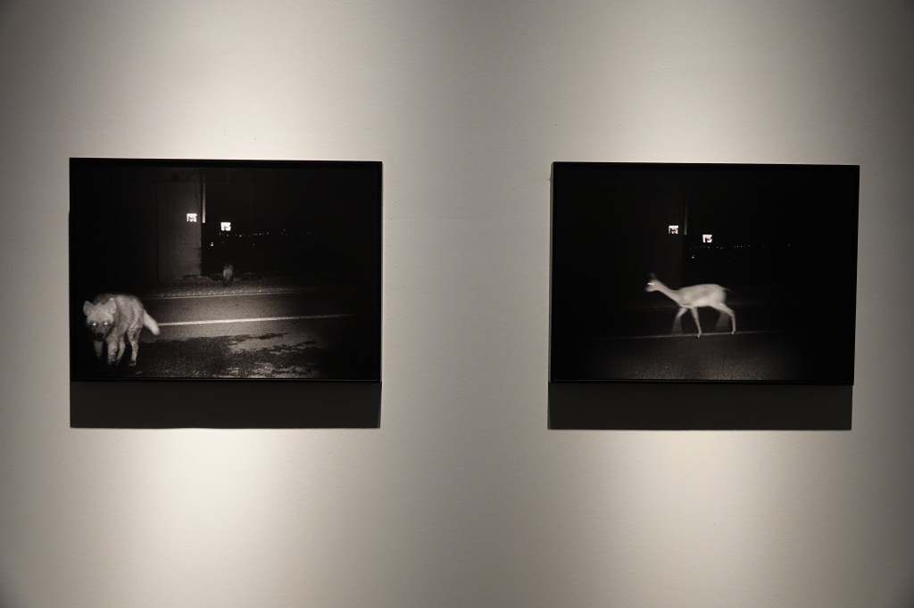 네타 라우퍼(Netta Laufer)도 저해상도를 전면에 내세우며 일상적 시각장의 관습을 교란한다. 그의 이미지는 미학적 목적으로 제작된 사진이 아닌, 보안 및 군사 목적으로 촬영된 CCTV의 한순간을 캡처한 결과물이다. 군사적 긴장감이 높은 접경지대나 분쟁지역의 국경에 설치된 CCTV에 우연히 찍힌 동물들을 작가는 정성스럽게 캡처하고 인화하고 표구한다. 그 이미지는 당연히 내셔널 지오그래픽이나 디스커버리 채널의 초고해상도 동물 화보와는 거리가 멀며, 짝짓기나 영역 다툼 같은 인간 주체 관점의 낭만적 동물 서사와도 전혀 닮은 구석이 없다. 작가의 동물 사진은 도시와 자연의 경계를 위태롭게 오가는 동물들의 처절한 생존 게임이고, 촬영 장비의 용도와 동물 사진의 미학적 위계에 관한 본원적 질문이다. 동물들은 어둠 속을 빠르게 스치고 지나가며 번뜩거리는 눈빛의 궤적만을 겨우 화면에 남기고, 그 스틸컷은 잠깐이나마 메모리카드에 저장되겠지만, 전략적 효용성이 전혀 없는 그 이미지들은 이내 다른 ‘유용한’ 영상 데이터에 자리를 내어 줄 것이다. 그럼에도 그 동물들이 표구되고 전시되어야 하는 이유가 있다면, 그 이유는 다른 고차원적인 생태·정치학적 이론에서 찾을 필요가 없다. 원래 자연에는 경계가 없다는 것, 그리고 그들도 그곳을 지나다닐 권리가 있다는 당연한 전제에서 출발해야 한다.
