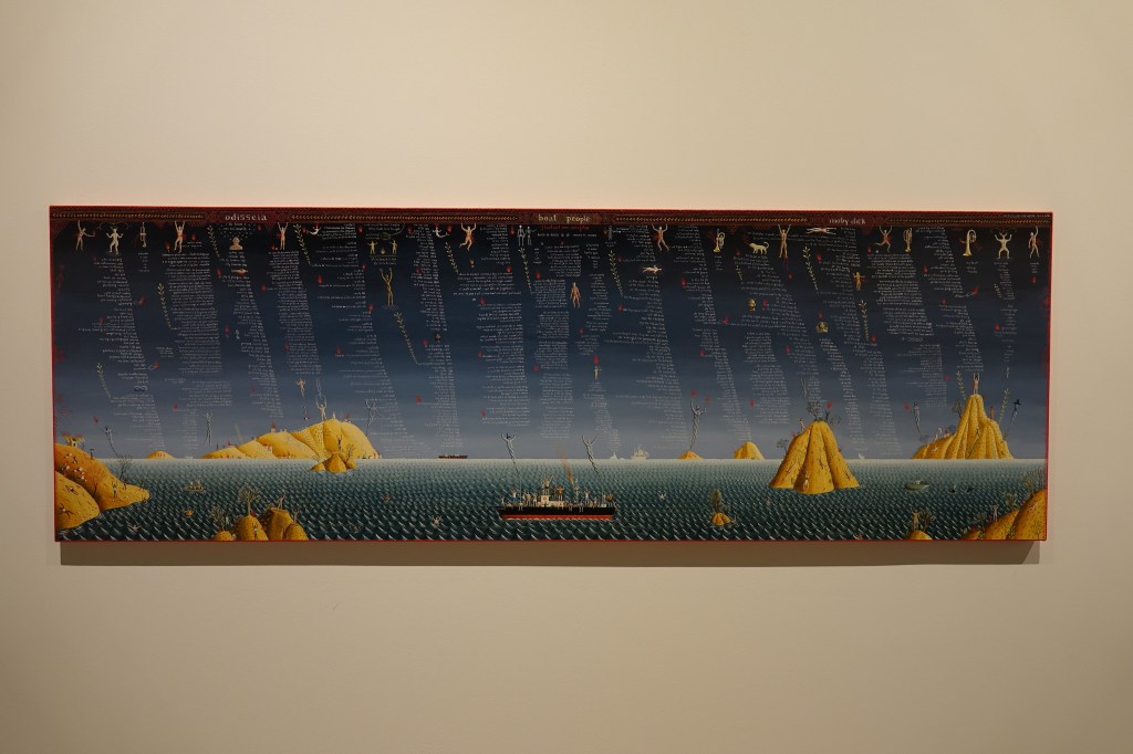 이 와중에 비교적 전통적인 매체와 기법을 꾸준히 밀고 나가는 한 예술가는 놀라울 정도의 고해상도 이미지를 펼쳐 내어 ‘신기술-저해상도’ 무리와 절묘한 대조를 이루었다. 알렉스 세르비니(Alex Cerveny)는 현대적 중세 회화를 선보였다. 그의 정교하고 아이코닉한 회화에는 중세 채식필사본에서 가져온 듯한 인물, 식물, 건물 모티브가 두둥실 떠다니고, 장난기 물씬 풍기는 꽈배기 인물이 곳곳에 배치되어 위트와 상상력을 더한다. 현대적 쟁점들과 역사적 계보를 한 화면에 정교하게 엮어낸 탁월한 구성력은 빈틈없는 회화적 마감 솜씨에 의해 더욱 강력한 힘을 발휘하며 관람객을 화면 구석구석으로 빨아들이며 오랫동안 붙들어 맨다. 화면 테두리를 감싸는 정교한 장식의 강렬한 색감은 중세 수도자들의 미감이 천년의 세월을 거슬러 여전히 강력한 시각적 힘을 발휘할 수 있음을 일깨운다.
