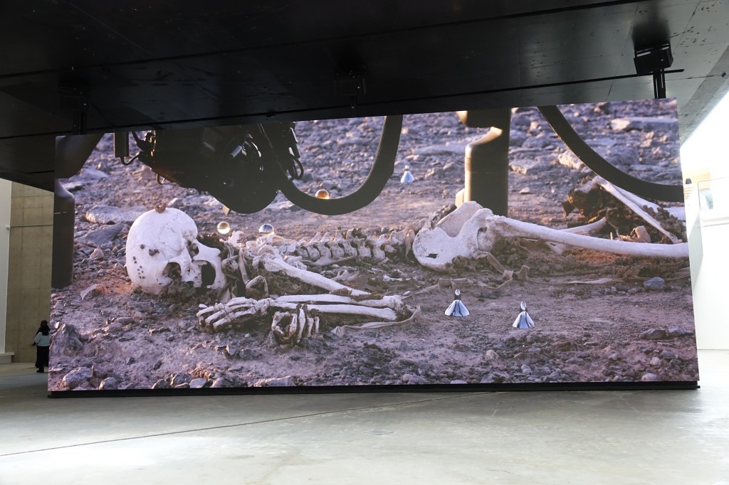 이번 전시에서는 완성되지 않고 지속 생성되는 작품들이 대거 등장해 예술 자체에 대한 사유를 불러일으킨다. 앞서 언급한 <리미널>이 실시간으로 영상을 생성하면서 재생하듯, <U움벨트-안리>는 <암세포 변환기>의 세포분열 데이터와 외부 조건을 학습해 실시간 이미지를 생성한다. 또 사막에서 발견된 해골을 둘러싼 기계장치의 의례를 무인 촬영 장비가 촬영해 실시간으로 편집하고 무한정 재생하기도 한다(<카마타>). 이처럼 서사성이 확정되지 않고 실시간 무작위성으로 변모하는 속성에 대해 위그(Pierre Huyghe)는 선형성의 회피이자 여러 가능성의 투영이라고 정의했다. 크라우스(Rosalind E. Krauss)식으로 말한다면 물리적 매체의 한계를 넘나들게 하는 오토마티즘(Automatism)을 예술가의 제작 전략 차원에서가 아니라, 작품에 내재하는 고유 속성 차원으로 끼워 넣은 것이다. 이렇게 본다면 위그가 통제 불가능한 생명체들을 미술관으로 잔뜩 끌고 들어와 자기 작품의 일부인 양 전유하는 전략도 오토마티즘의 일환으로 설명할 수 있다(<주드람 4>, <캄브리아기 대폭발 16>, <암세포 변환기>, <주기적 딜레마>). 의도치 않게 작품의 일부가 되어버린 생명체는 큰 틀에서 작가의 통제 범위 안에 있지만, 구체적 실천에서는 철저히 우발성을 따른다. 생명체는 계속 움직이며 매체를 넘나드는 오토마티즘을 실행한다. 그것이 본래 품은 의도나 욕망과는 별개로.