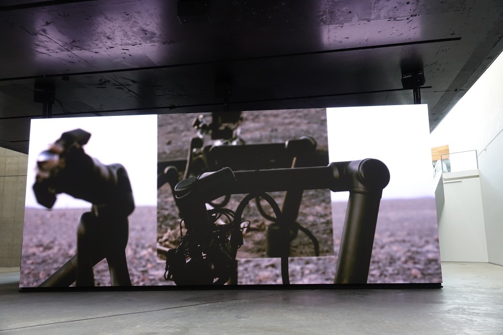 감각 기관 없는 신체의 무기력감은 전시장에 들어서자마자 마주하게 되는 대형 영상 작업인 <리미널(Liminal)>에서부터 강조된다. 얼핏 완벽한 육체를 지닌 존재는 광망한 대지를 서성거리고, 더듬거리고, 엎어졌다가 돌아눕고, 이내 다시 일어서 위태롭게 경계의 끝자락에서 비틀거린다. 완벽한 육체와 대비되게 그 존재의 얼굴은 텅 빈 진공이다. 눈도, 코도, 입도 없이 싱크홀처럼 뻥 뚫린 얼굴은 감각 기관 없는 신체의 무기력감을 여과 없이 보여준다. 하지만 이 신체를 담은 작품 자체는 전시 공간에 배치된 센서를 통해 실시간으로 주변 정보들을 빨아들여 이 작품의 서사적 흐름을 지속적으로 갱신한다. 공식적 설명에 따르면, 이 작품은 사전에 제작된 영상을 단순히 사후적으로 재생하는 것이 아닌, 끊임없이 실시간으로 재생산되는 영상이다. 제작과 송출이 실시간으로 이루어지는, 이른바 현재진행형의 작품이다. 작품은 실시간으로 학습해 스스로를 갱신해 나가는데, 정작 감각 기관과 주체성을 가지고 진취적으로 운명을 개척해 나가야 할 것으로 전제되는 인간의 형체는 주체적 작품 안에서 감각 기관을 거세당한 채 그저 존재하기에도 급급한 모양새다.