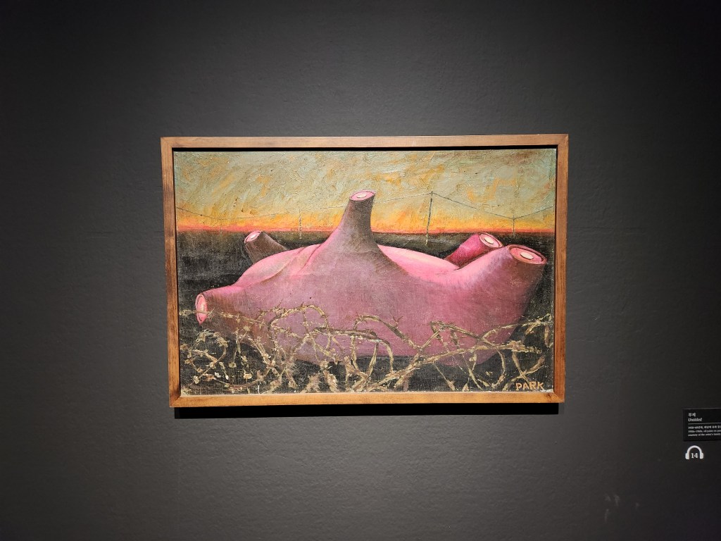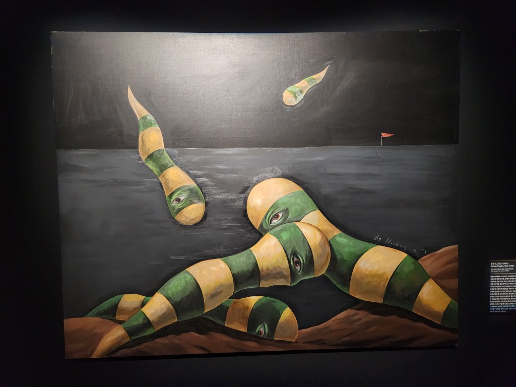 전시는 1930년대부터 1990년대까지 초현실주의 경향을 선보인 선도적 사례로부터 시작한다. 이들 중에도 스스로 초현실주의자라는 정체성을 표면화했던 예술가는 소수였다. 전쟁과 제국주의와 권위주의가 이성 중심적 사고에 회의를 불러오고 현실도피적 욕망을 부추겼던 경향 자체는 미술계 저변에 두텁게 내려앉아 있었다고 봐야 한다. 모아 놓고 보니 현실과 환상의 경계에 놓인 근현대 한국 작품들이 생각보다 많았다. 그 많은 작품을 추리는 과정에서 기획자들이 느꼈을 고뇌도 전해졌다. 욕심이 과했던 모양이다. 공간에 비해 작품이 너무 많았다.