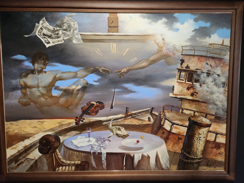 김종하는 프랑스 유학파답게 아카데미즘적인 초현실주의를 선보였다. 마그리트(René Magritte) 풍의 정돈된 구도가 인상적이다. 아마 당대에 노골적으로 초현실주의자로서 정체성을 드러낸 몇 안 되는 사례일 것이다.