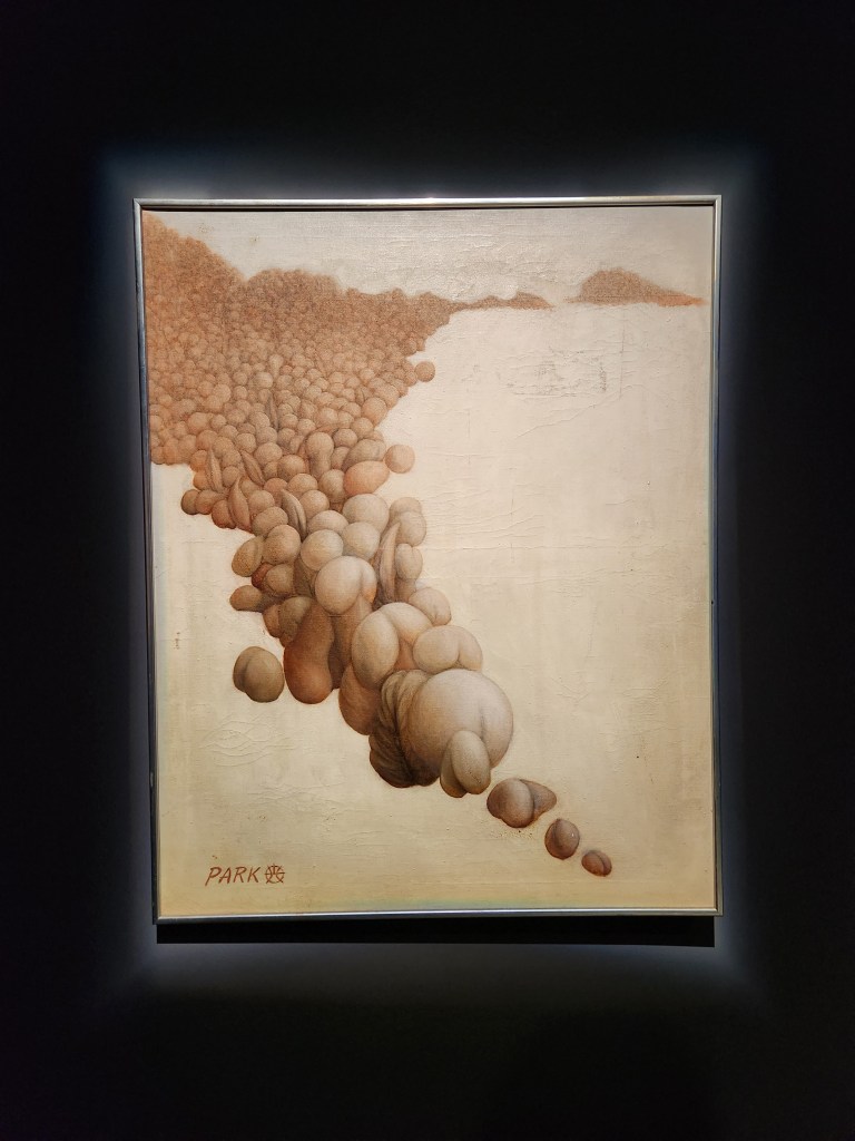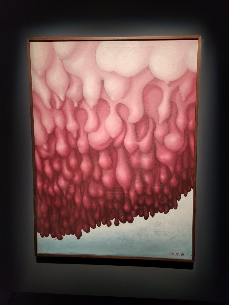 박광호의 작품은 기하학적 추상과 초현실주의의 경계를 오간다. 비정형의 세포질 형상 혹은 요철 같은 덩어리들을 구현했는데, 대략적인 형태는 중구난방이지만 그 표면의 마감처리에는 엄청난 공력이 투입되었다. 오늘날 최첨단 3차원 랜더링 기술에 버금가는 외형적 충실성과 그라데이션의 완성도를 보여준다. 어떤 형상을 뒷받침하는 도구가 존재할 때 거기서 형상을 끄집어내는 것은 어렵지 않다. 이미지 소프트웨어 툴이 무궁무진한 우리에게 이 이미지들은 그리 혁신적으로 다가오지 않을 수 있다. 그런데 아무런 도구가 없는 상태에서, 오직 머릿속에서만 유영하는 이미지를 붙잡아 한순간에 고정해 놓는 일은 소수의 뛰어난 예술가들만이 해낼 수 있다. 박광호가 배치한 물질들은 얼핏 우연히 던져 놓은 그 상태 그대로를 표현한 것으로 보이지만, 실상은 치밀한 내적 관찰과 배치와 재조합의 결과물이다. 우리는 회화의 표면에 고정된 이미지를 보지만, 작가의 내면에서 이 형상들은 끊임없이 요동치고 분절하고 이합집산했을 것이다. 그런 의미에서 박광호의 기괴한 물질들은 단순히 정적인 회화가 아니라 일종의 스틸컷이다. 이 물질들이 빚어내는 최초의 파동이 어떤 형태였는지 알고 싶다면, 충분한 시간을 들여 이 화면을 마음속 필름에 녹화해야 한다. 진정성 있게 열린 마음으로 녹화한 사람만이 물질의 놀라운 움직임과 파동을 경험할 수 있을 것이다.